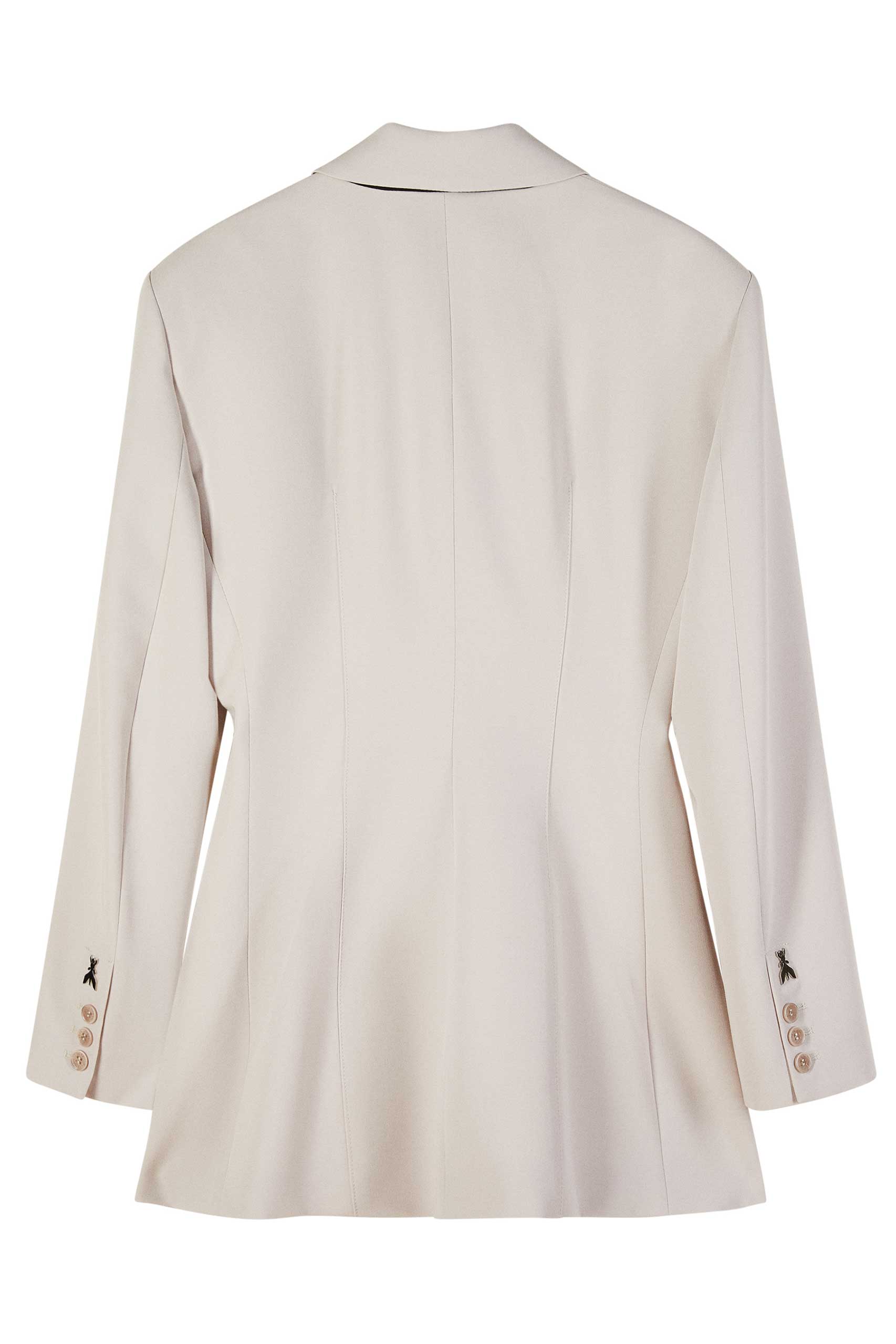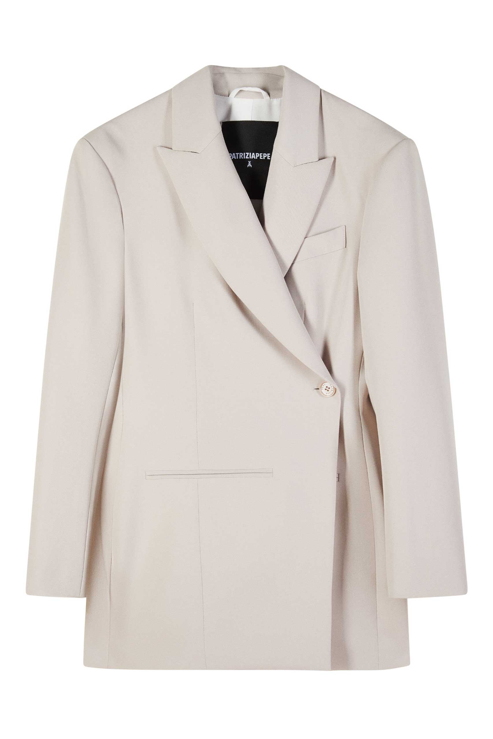 Нова визия на кройка се оформя в този блейзър от вискозен габардин. Дизайнът оформя силуета, подчертавайки талията с асиметричното закопчаване и подчертаните рамене. Комбинирайте го с подходящ ефирен панталон за съвременен тоалет.
