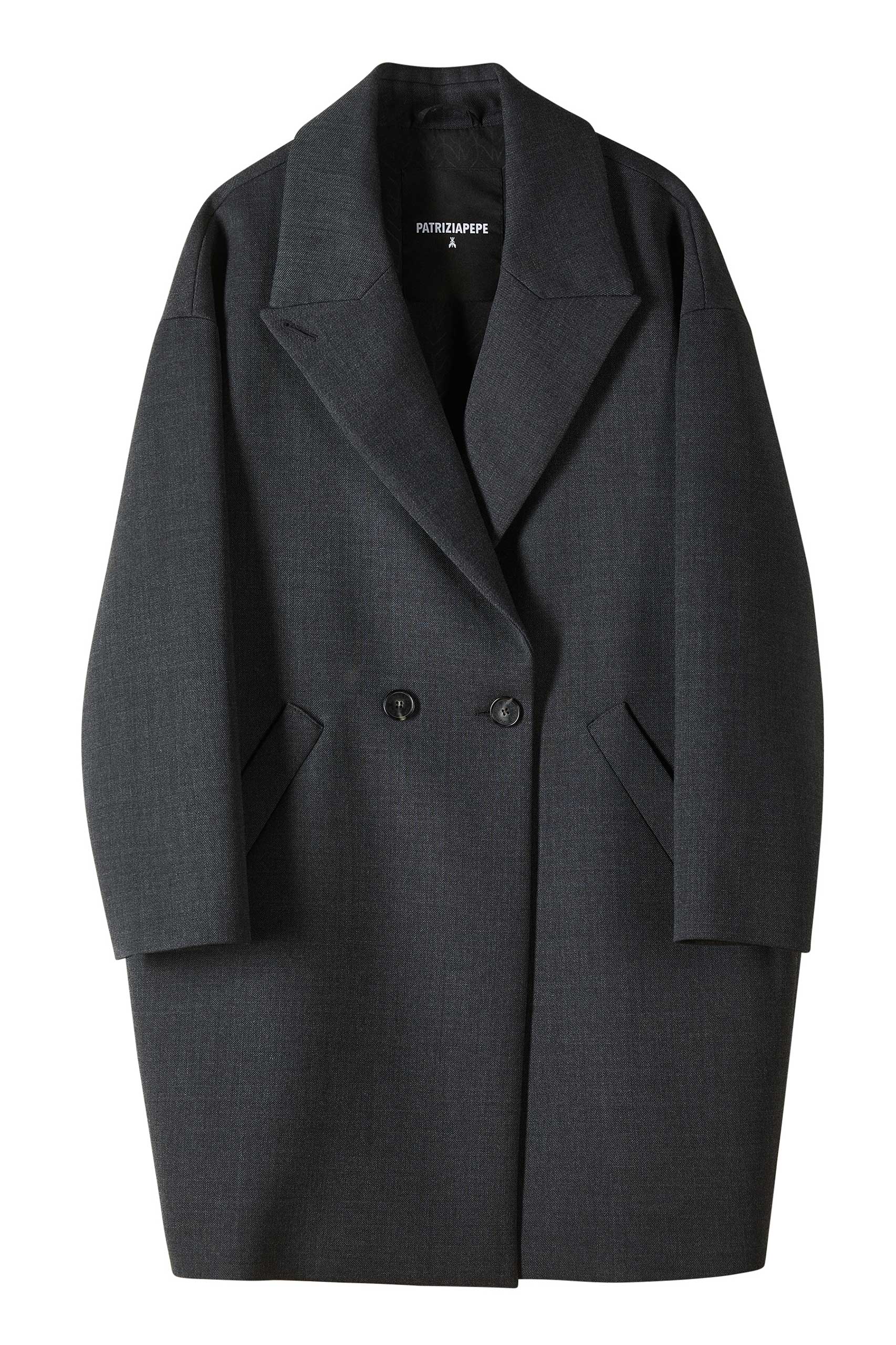 Търсите перфектното палто за всеки ден? Това палто с двойно закопчаване е изработено от структурирана вълнена смес с овърсайз кройка за непринудена визия. Спуснати рамене, минимални линии и големи предни джобове, с копчета с ефект на рога за стилен щрих. Носете го отворено в небрежно настроение или затворено за по-дефиниран силует.