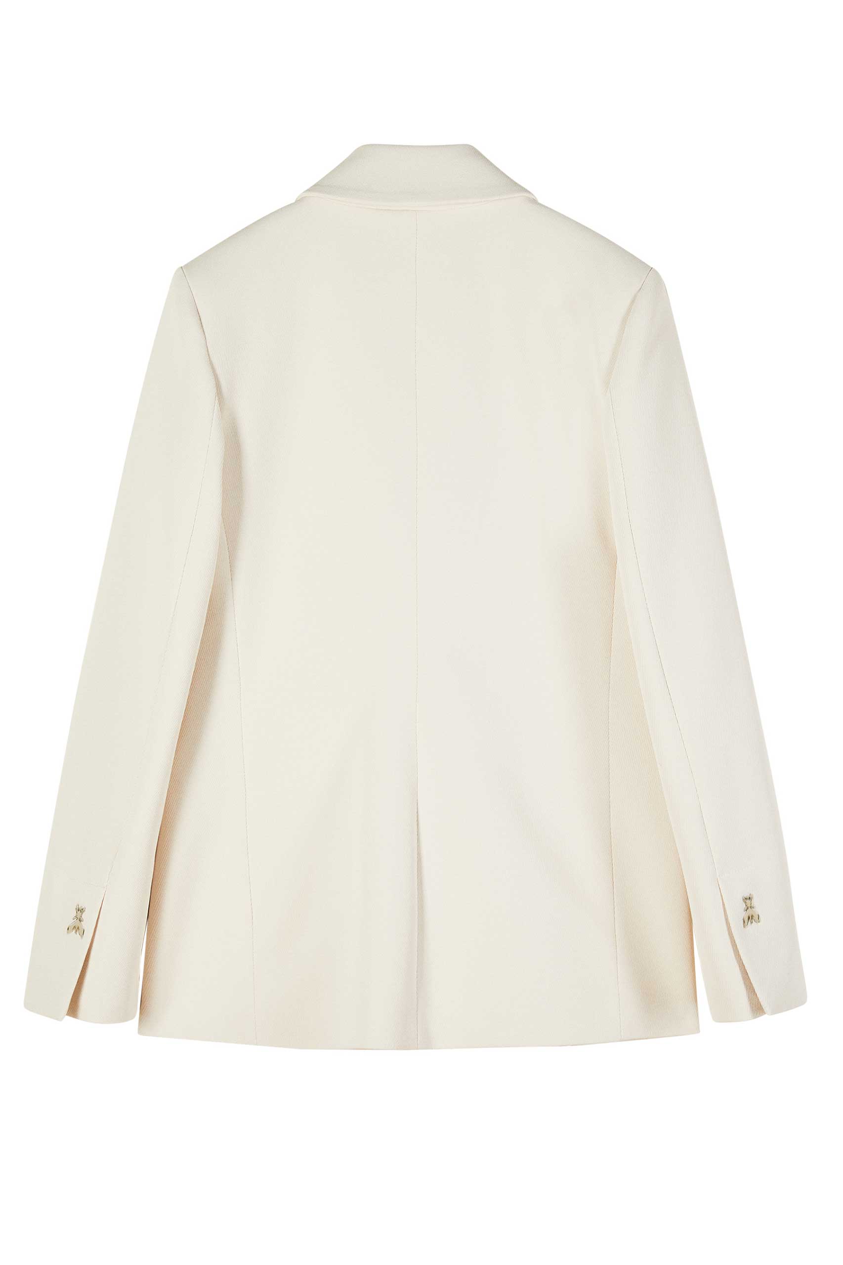 Блейзър с двуредно закопчаване, изработен от еластичен кепър с компактна прежда за структурирана текстура. Меката кройка е в контраст с прецизността на детайлите, с остри ревери и джобове с кантове, създавайки елегантен и изискан вид. Идеален за тотално официална визия или за комбиниране с деним за нотка градски блясък.