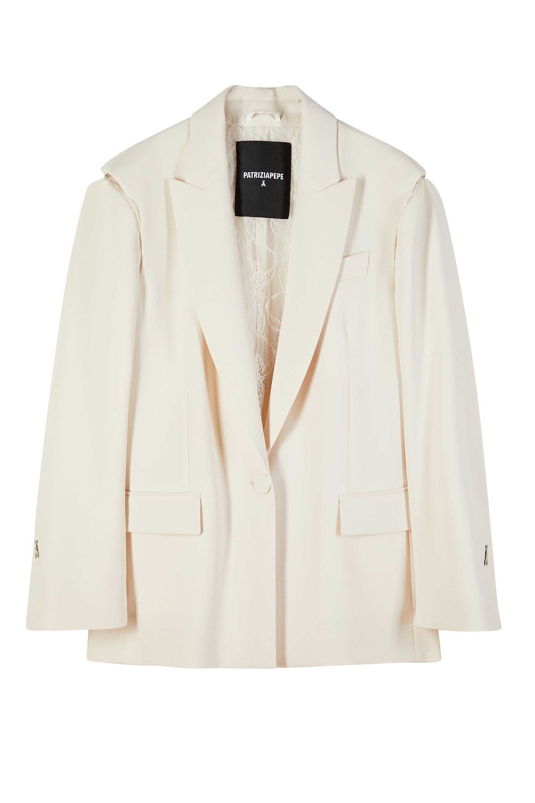 Капсулната колекция „Party Time“ включва оувърсайз креп блейзър, характеризиращ се с изискани дантелени вложки, които украсяват широкото изрязване на гърба, и структурирани отвори на раменете, които могат да се закопчават с кукички. Дреха, която се деконструира, за да отвори нови интерпретативни хоризонти. Чувствена, дръзка и смела: манифест на ДНК-то на „Patrizia Pepe“, създаден за динамичната жена, която живее вечерите си със свобода и самосъзнание.