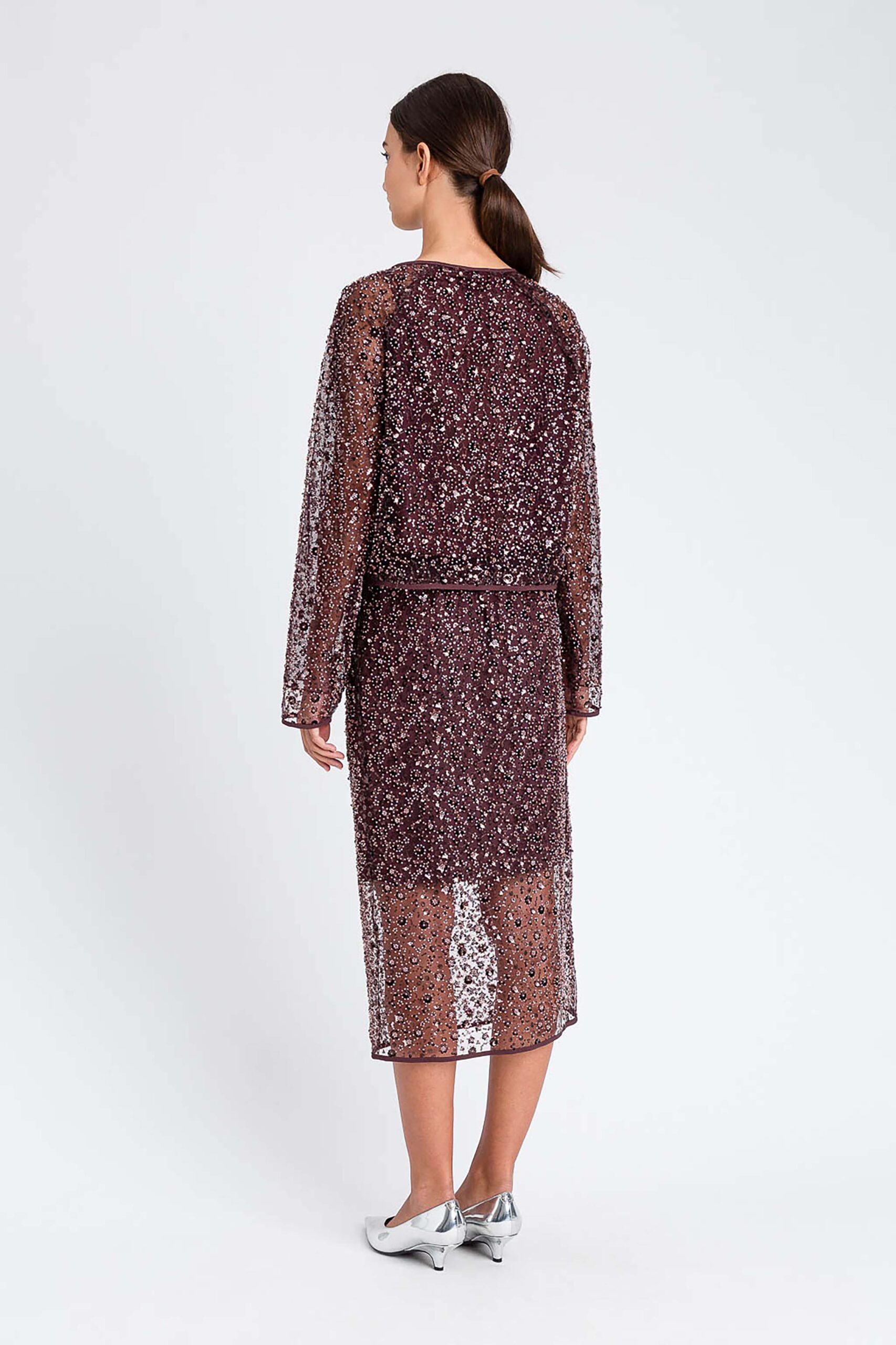 Блуза от тюл от колекция Actitude с бродерия от мъниста и микропайети по цялата повърхност, широки реглан ръкави, подплата, свободна кройка.